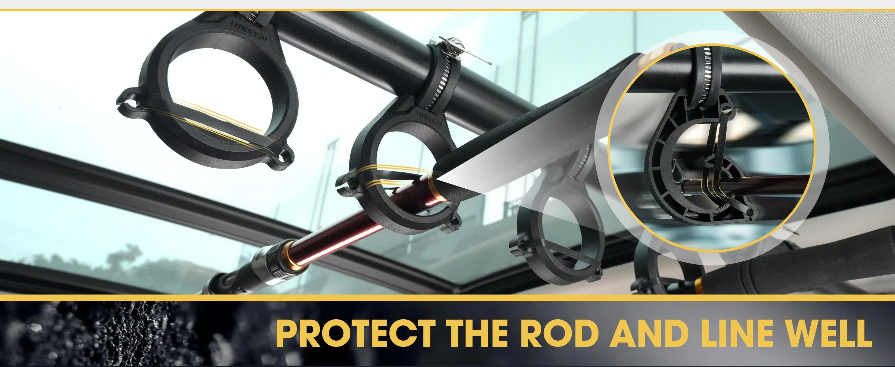 This compact and well-designed rod holder attaches easily to four vehicle handles, keeping rods close to the roof. It maximizes headroom and keeps the back seat area tidy and free of clutter.